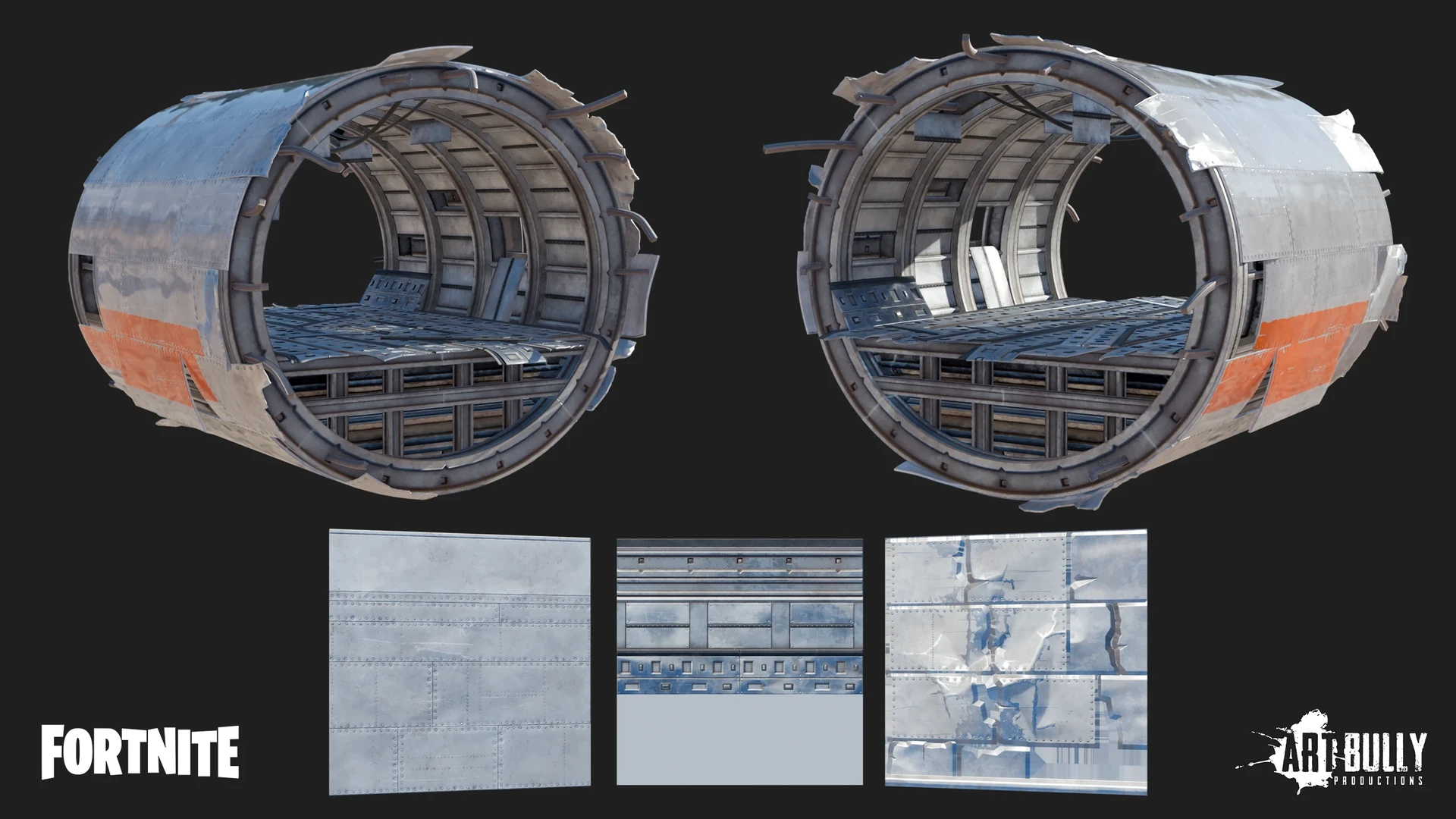 I was responsible for creating the crashed jet body for Fortnite Chapter 4, Season 3. It was built in parallel as a traditional low-poly model with LODs and a Nanite version, made to support the then-new Nanite technology